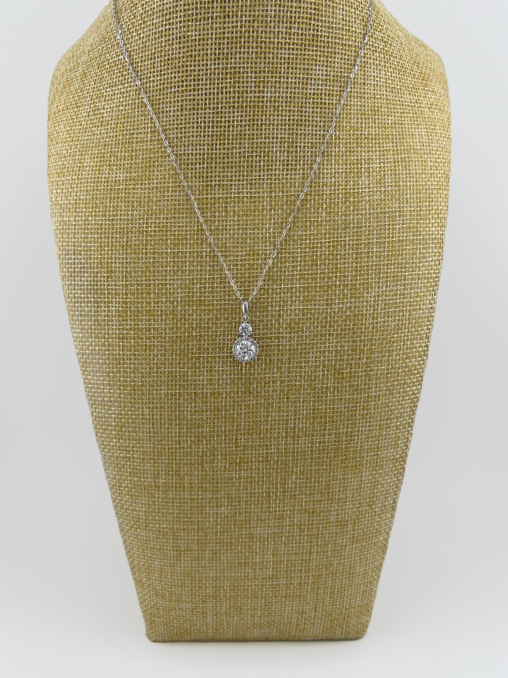 Elevate your jewelry game with our 1.5CTW VVS1 Certified Moissanite Halo Necklace. Crafted from high-quality Rhodium Plated Sterling Silver, this necklace features a dazzling Round Brilliant Cut Moissanite Halo Pendant and a versatile 16-18" chain. Discover the allure of a true masterpiece that blends beauty, quality, and sustainability.