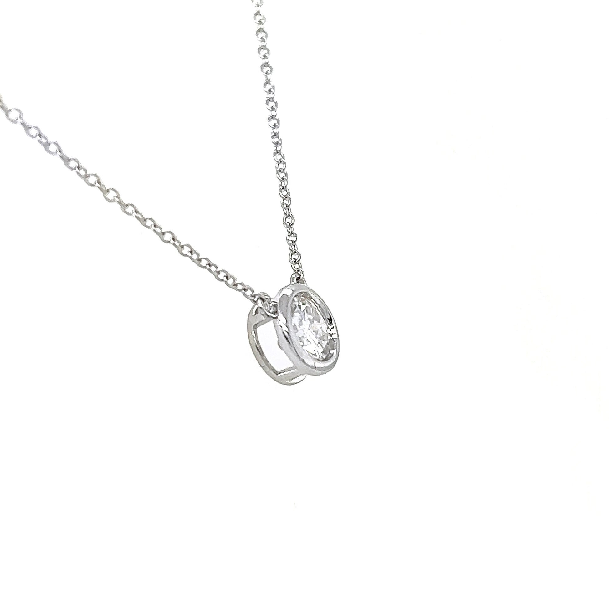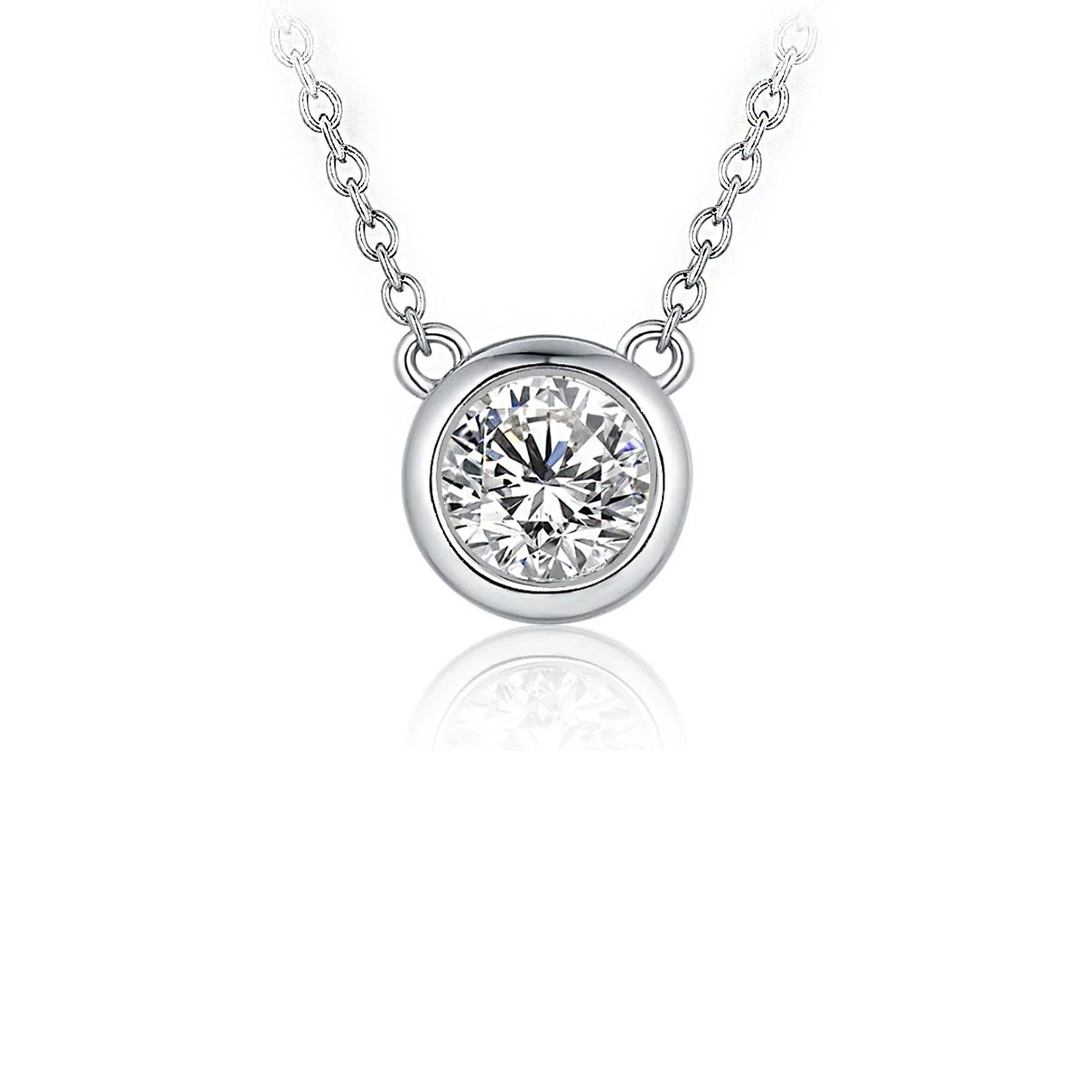 1 Carat Moissanite Solitaire Necklace: 14K Gold or Sterling Silver Bezel Pendant