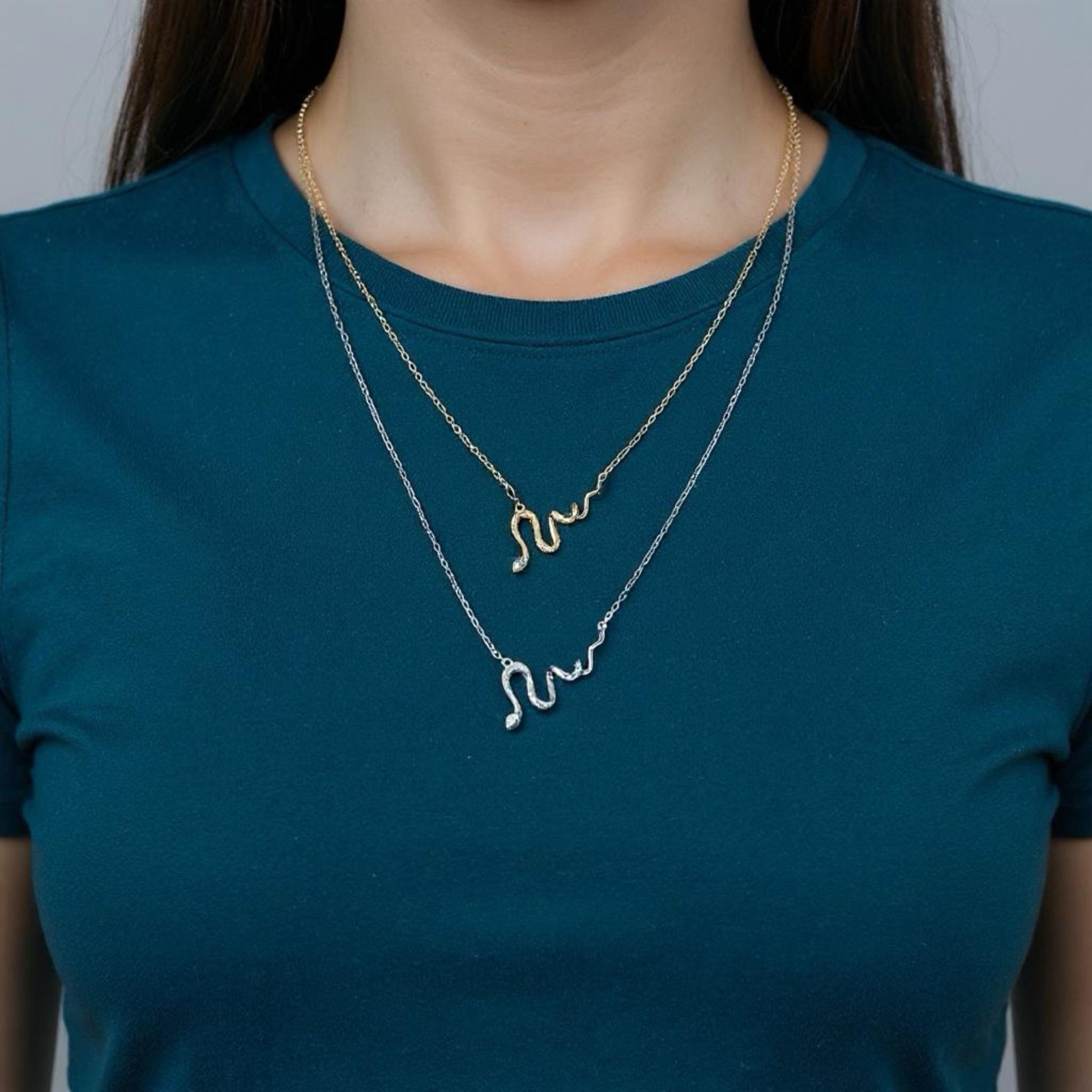 ✨ 14K Gold Plated Moissanite Snake Necklace | Dainty Sterling Silver Serpent Pendant Unleash your inner style with our enchanting Moissanite Snake Necklace, a perfect blend of elegance and mystique. This beautifully crafted serpent pendant is made from genuine 925 sterling silver and expertly plated with a lustrous layer of 14K gold or rhodium (silver tone). At the heart of this unique piece, a brilliant, lab-created moissanite stone sparkles with more fire than a traditional diamond, making it an exquisite and affordable alternative. This dainty snake necklace is designed for the modern woman who appreciates minimalist jewelry with a touch of meaningful symbolism. Key Features: 💎 Premium Materials: Our necklace is made with a core of solid 925 Sterling Silver, a hypoallergenic and durable metal, ensuring it's safe for sensitive skin. 💎 Lustrous Finish: Choose between our radiant 14K Gold Plating or the sleek, silvery shine of Rhodium Plating to match your personal style. 💎 Ethical Moissanite: Features a dazzling moissanite gemstone, a sustainable, conflict-free, and eco-friendly alternative to a diamond, celebrated for its superior brilliance. 💎 Symbolic Design: The serpent symbolizes transformation, rebirth, and eternal love, making this more than just jewelry—it's a personal talisman. 💎 Versatile Style: The perfect minimalist jewelry piece that is subtle enough for daily wear yet sophisticated enough to be a statement piece for a special occasion. This Moissanite pendant is the perfect gift for her, whether for a birthday, anniversary, or a special milestone. It arrives beautifully packaged and ready to be presented to someone special, including yourself. Specifications: * Material: 925 Sterling Silver * Plating: 14K Gold or Rhodium * Gemstone: Moissanite * Necklace Style: Dainty, Pendant, Snake * Chain Length: Adjustable 16"-18" * Item Weight: 3.8 gr * Pendant Measurements: Height- 17mm, Width -34mm Quality Fine Jewelry in Precious Metal: 925 Sterling Silver (92.5% pure silver, nickel-free and hypoallergenic) polished to a brilliant shine. To ensure the longevity of your jewelry, we recommend following these simple CARE INSTRUCTIONS: - Avoid exposure to perfumes, lotions, and other chemicals that may cause discoloration or damage to your jewelry. - Remove your jewelry before bathing, swimming, and exercising to prevent damage caused by moisture or sweat. - Do not wear your jewelry while sleeping to prevent snagging or breaking. - Store your jewelry in a dry and cool place to avoid exposure to humidity or sunlight, which can damage your jewelry over time. We take great care in crafting your jewelry, and we understand the importance of timely delivery. We will do everything we can to ensure that your order arrives on time, so you can enjoy your new piece of jewelry as soon as possible. When you order from us, your item will be shipped in a gift-wrapped box or snap-button bag. Our items are perfect for gifting or for keeping for yourself. If you're sending your order directly to someone else and would like to include a personal message, please add a note at checkout, and we will take care of the rest. Thank you for choosing AnianJewelryStore. We are excited to share our passion for jewelry with you, and we look forward to serving you!