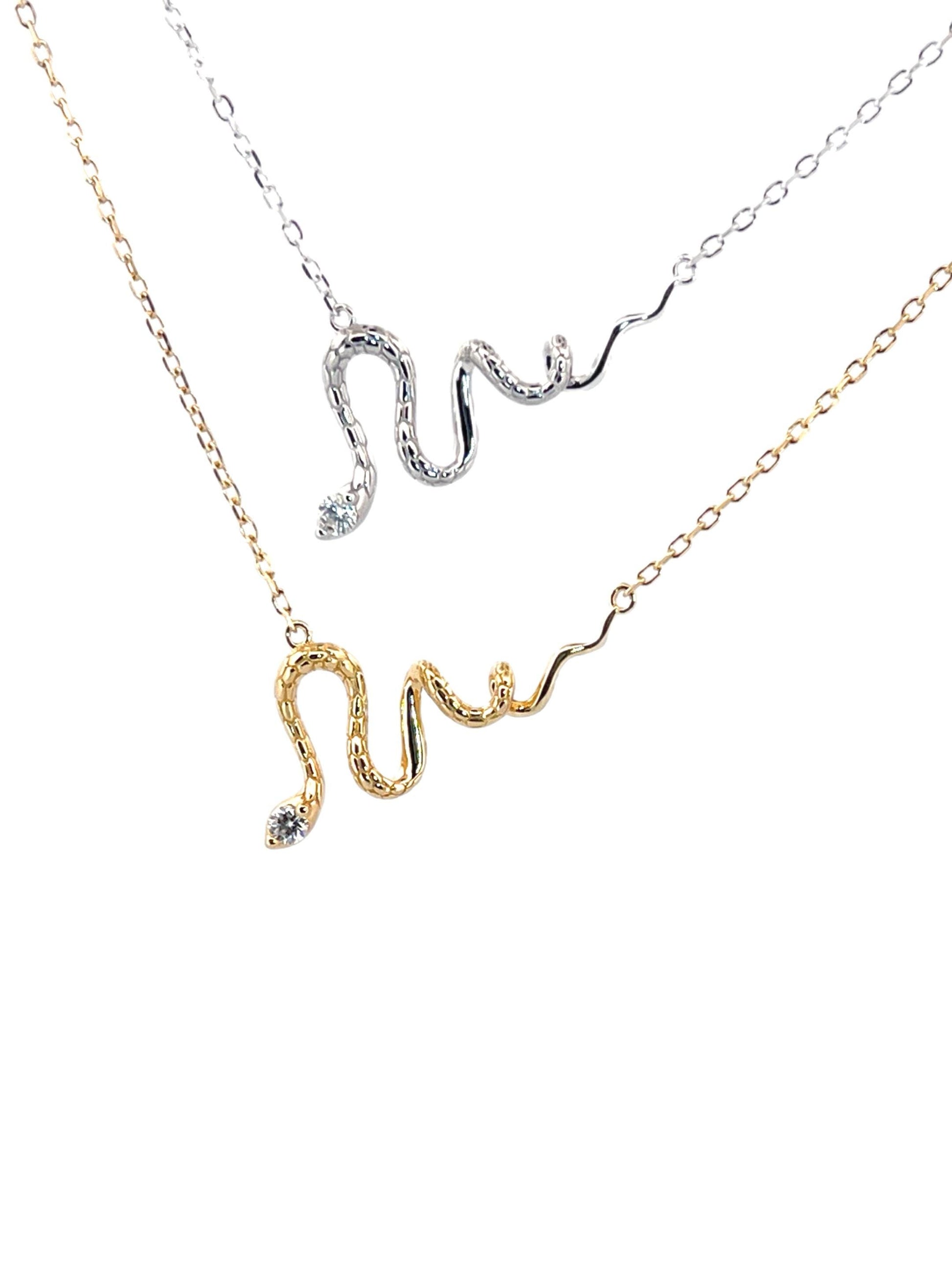 14K Gold Moissanite Snake Pendant: Sterling Silver Serpent Necklace