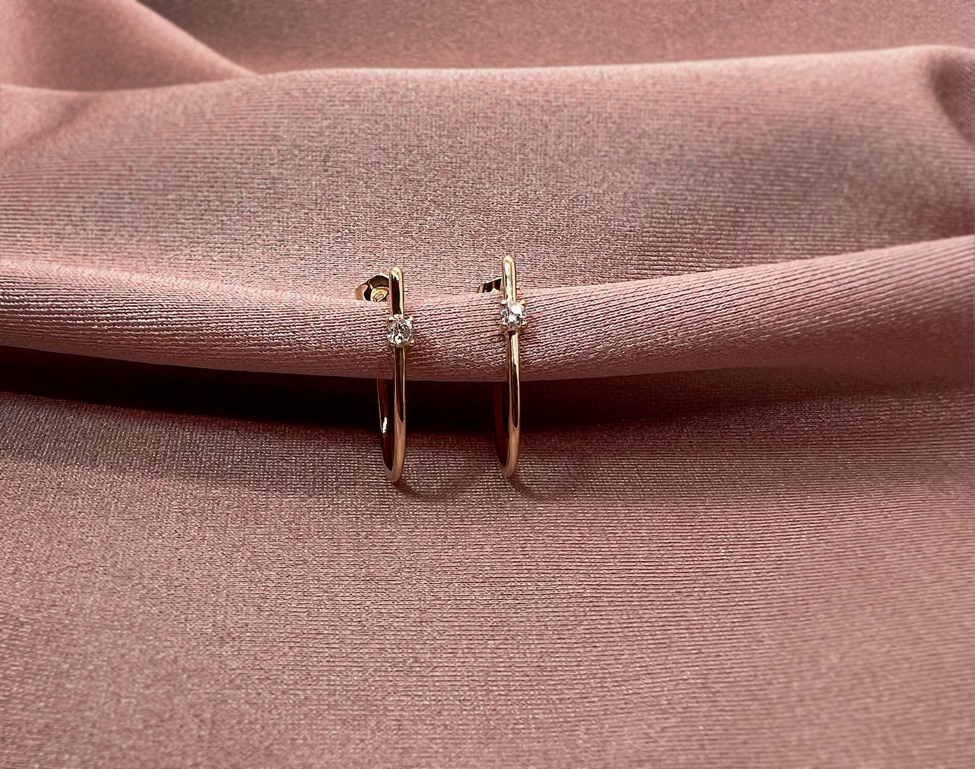 Each earring is adorned with a scintillating diamond, adding a touch of brilliance to your look. The delicate diamonds are carefully selected for their exceptional quality and sparkle, ensuring that you shine bright wherever you go.