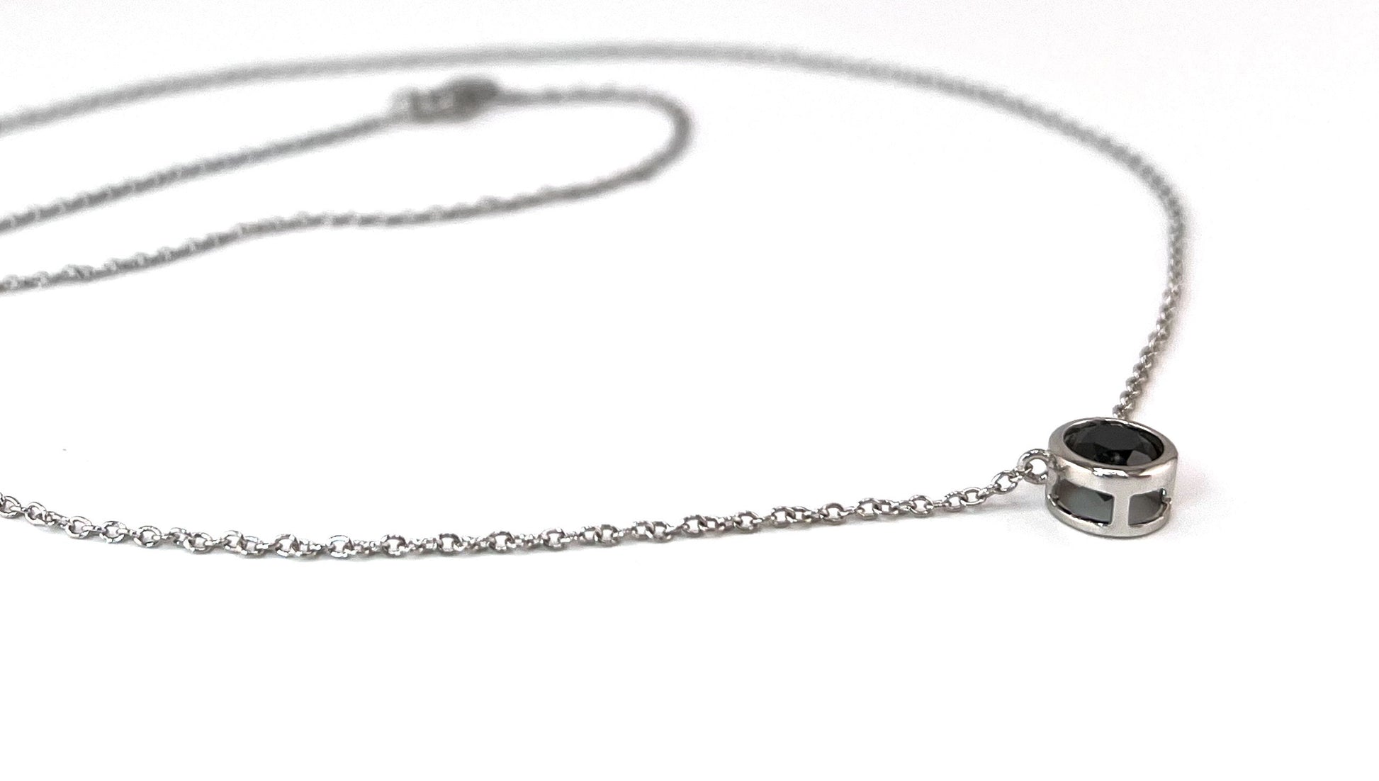 Black Diamond Solitaire Pendant Necklace or Bracelet: Sterling Silver Bezel Set