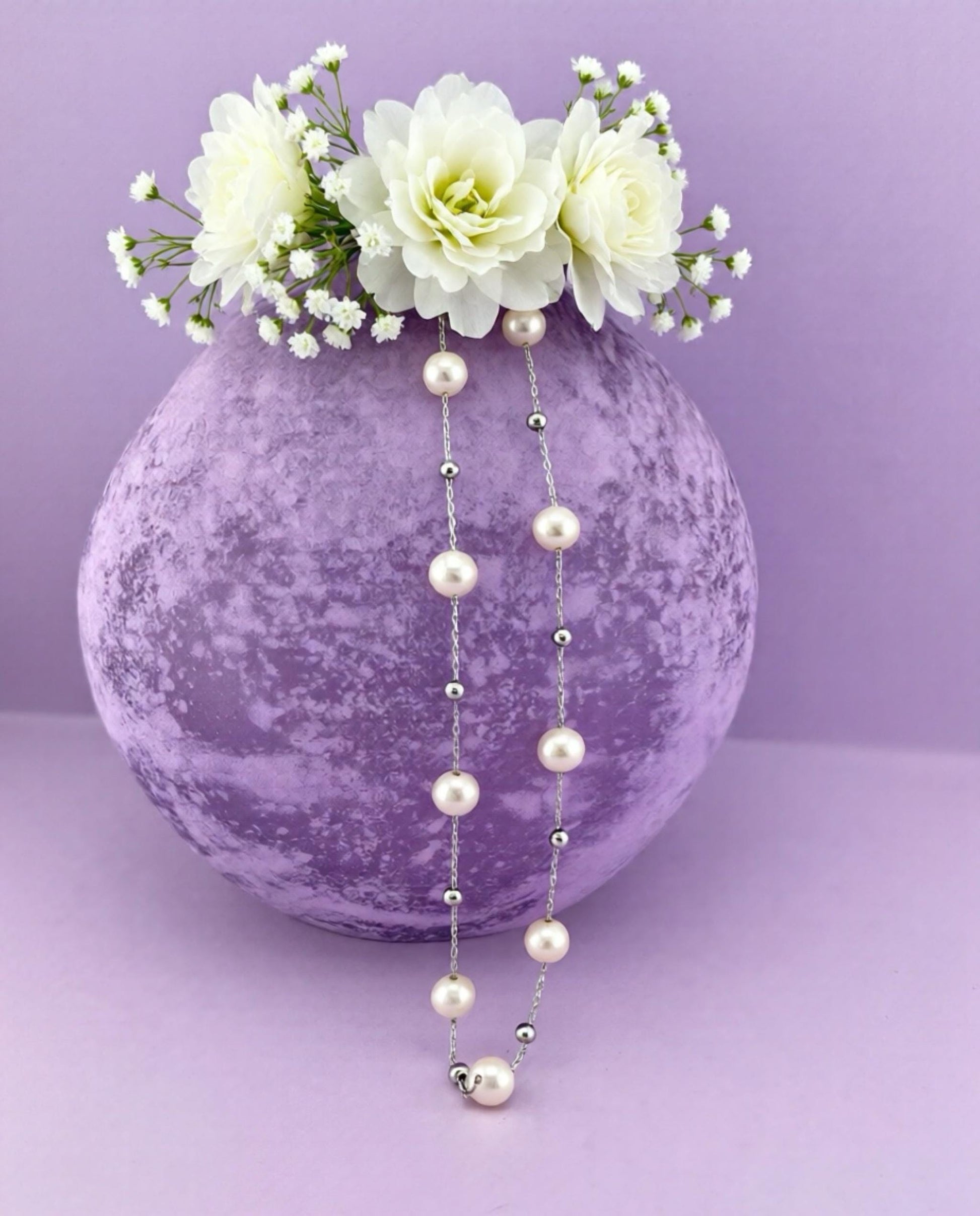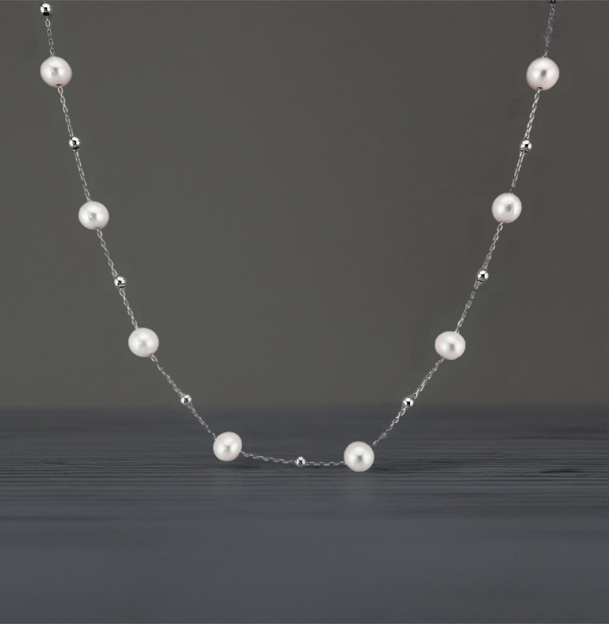 Freshwater Pearl Station Necklace, Sterling Silver Pearls by the Yard, Dainty Bridesmaid Wedding Gift, Elegant Anniversary Gift for Women