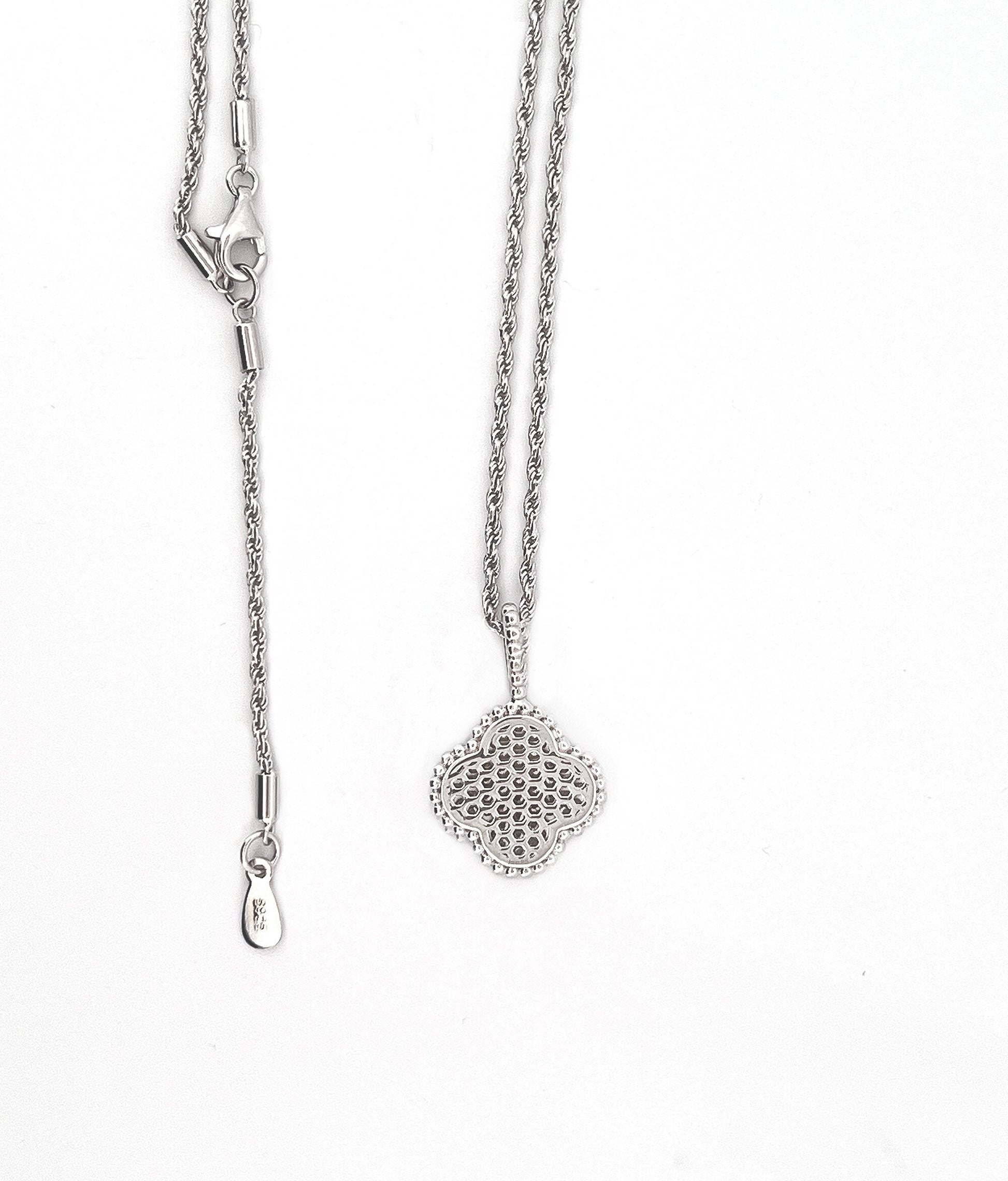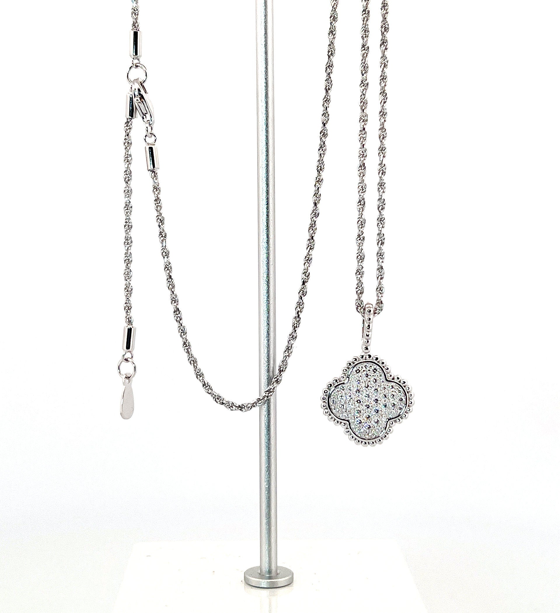Moissanite Four-Leaf Clover Necklace: Rhodium Plated Sterling Silver Pendant