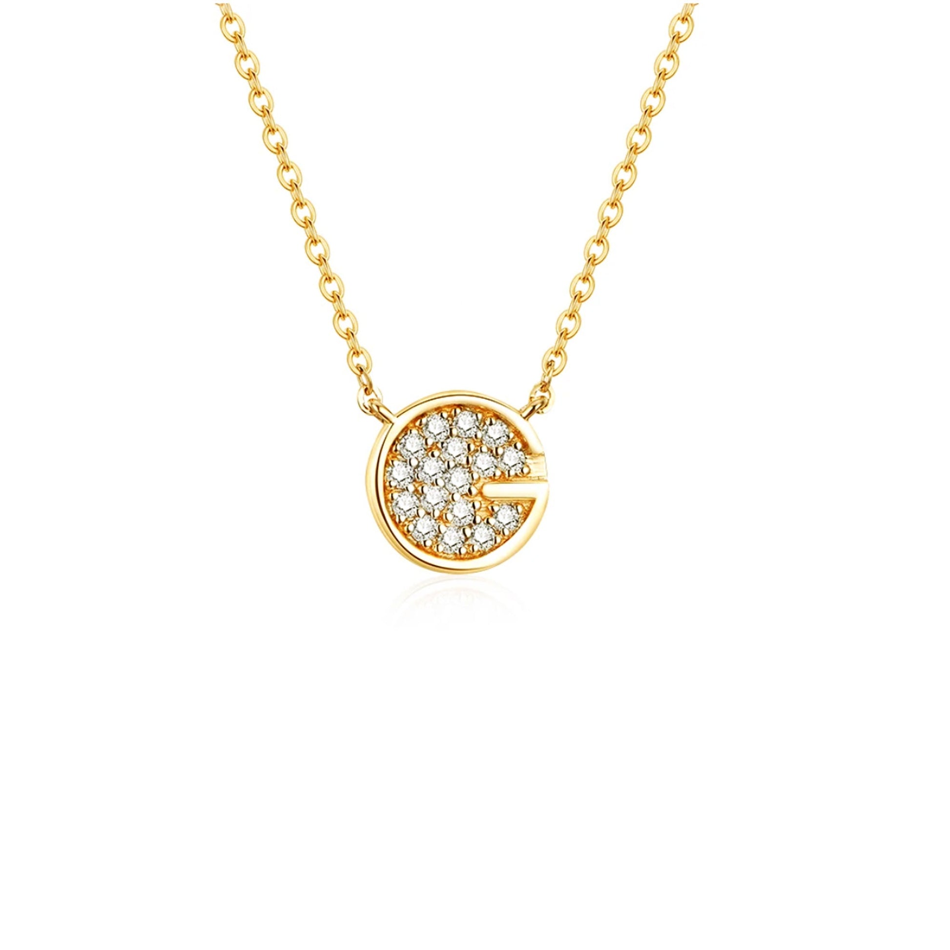 Moissanite Pavé Disc Necklace: 18K Yellow Gold Plated Sterling Silver