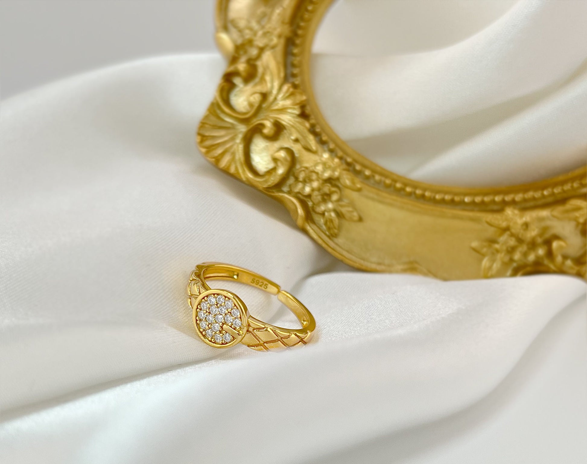 Moissanite Pave Disc Ring: 18K Gold Plated Sterling Silver