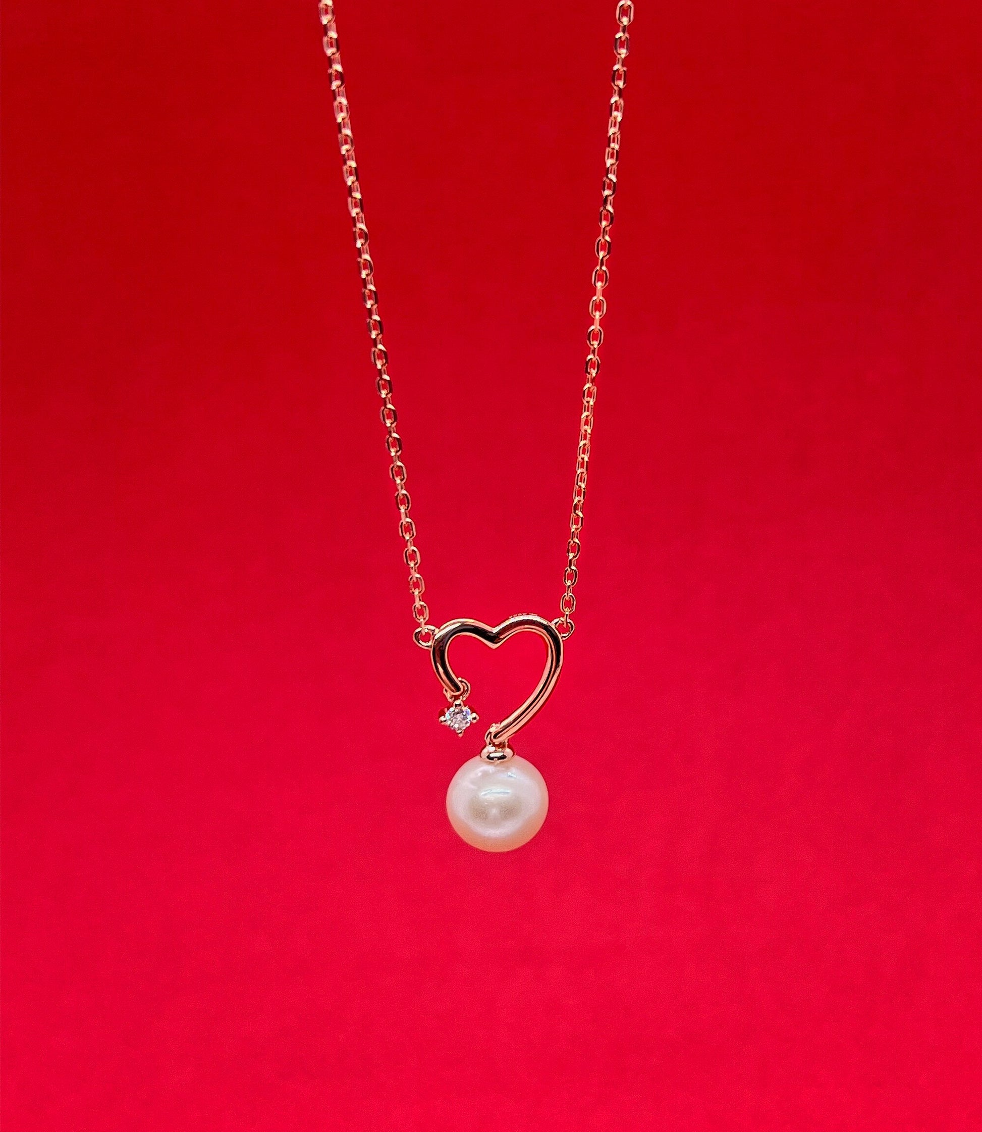 Elevate your jewelry collection with our exquisite Certified Moissanite and Cultured Freshwater Pearl Heart Necklace. Crafted in luxurious 14K Rose Gold-Plated Sterling Silver, this timeless piece seamlessly marries sophistication with nature's elegance.