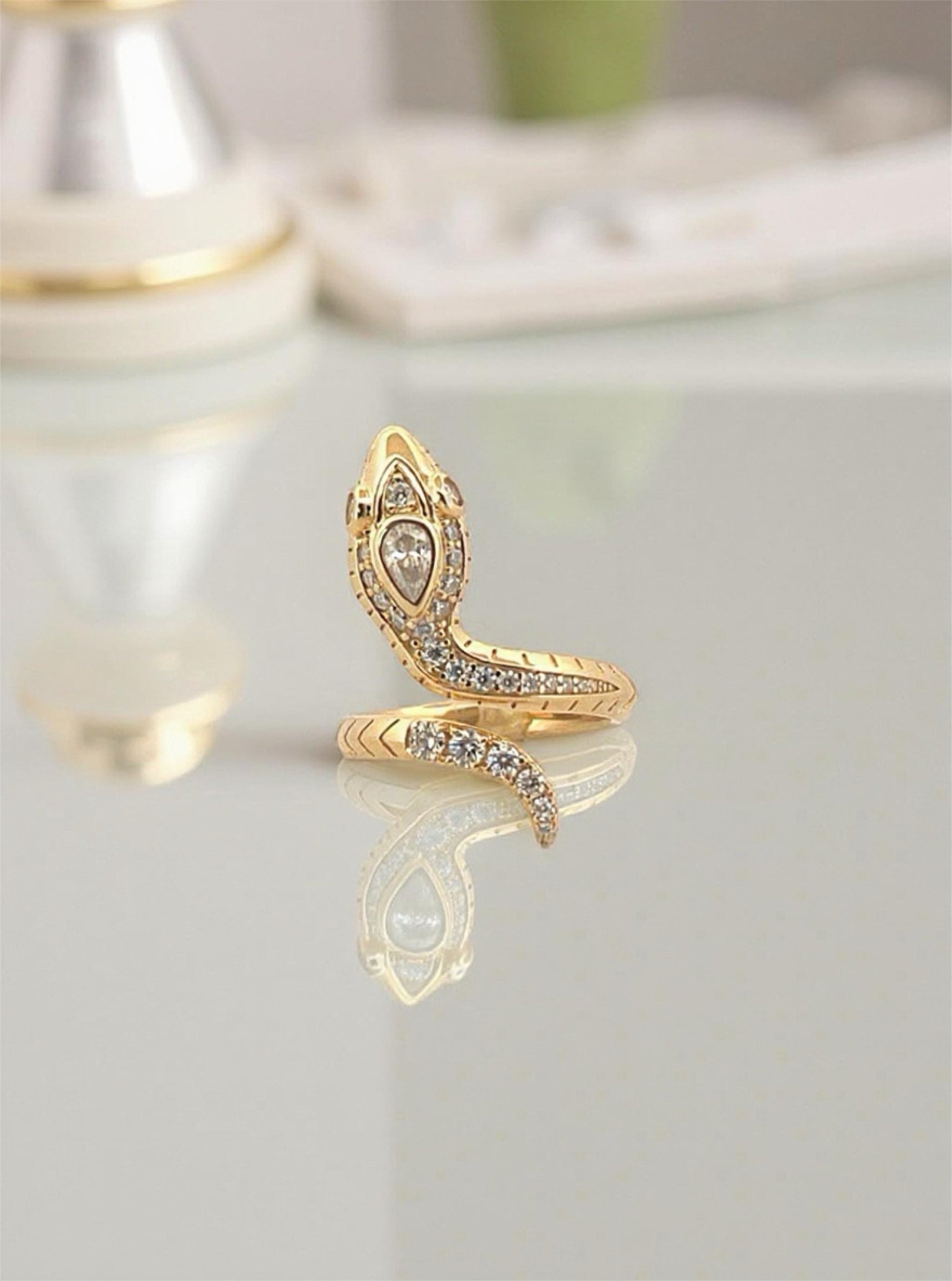 Whether you're drawn to the ancient symbolism of rebirth and eternity associated with serpents or simply seeking a statement piece that's both elegant and edgy, this ring is designed to impress. It's the perfect gift for her, a one-of-a-kind anniversary gift, or a special treat for yourself.
