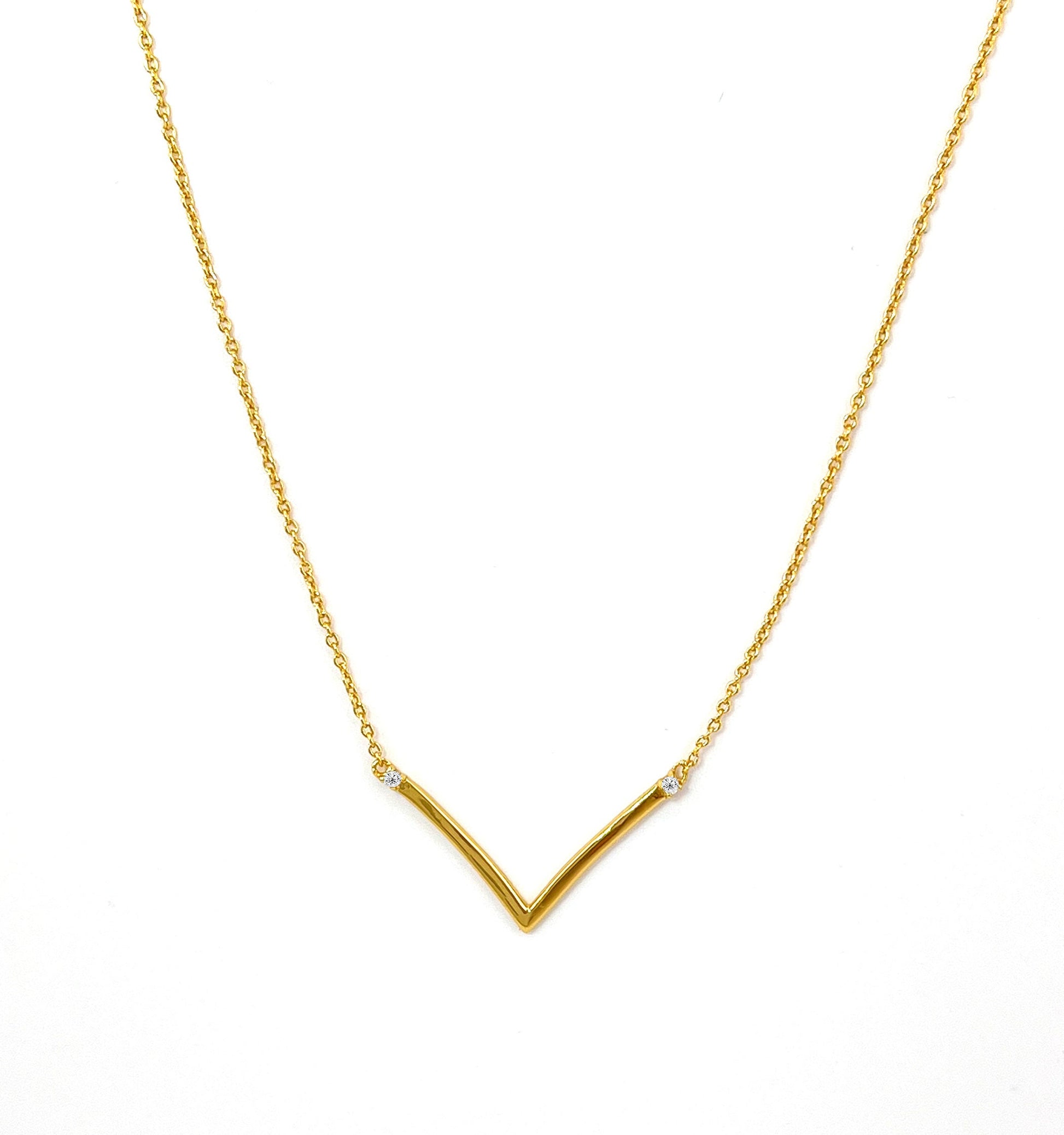 Moissanite V-Necklace: 18K Gold Plated Sterling Silver Chevron Necklace