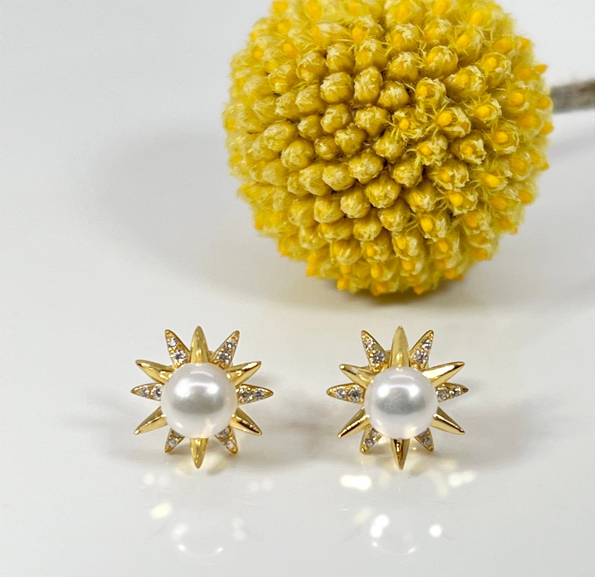 Introducing our mesmerizing Freshwater Pearl and White CZ Star Stud Earrings, meticulously crafted in premium Yellow Gold Plated Sterling Silver. These exquisite Pearl and Cubic Zirconia Stud Earrings offer a captivating blend of natural beauty and brilliant sparkle, making them a must-have accessory for any jewelry enthusiast.