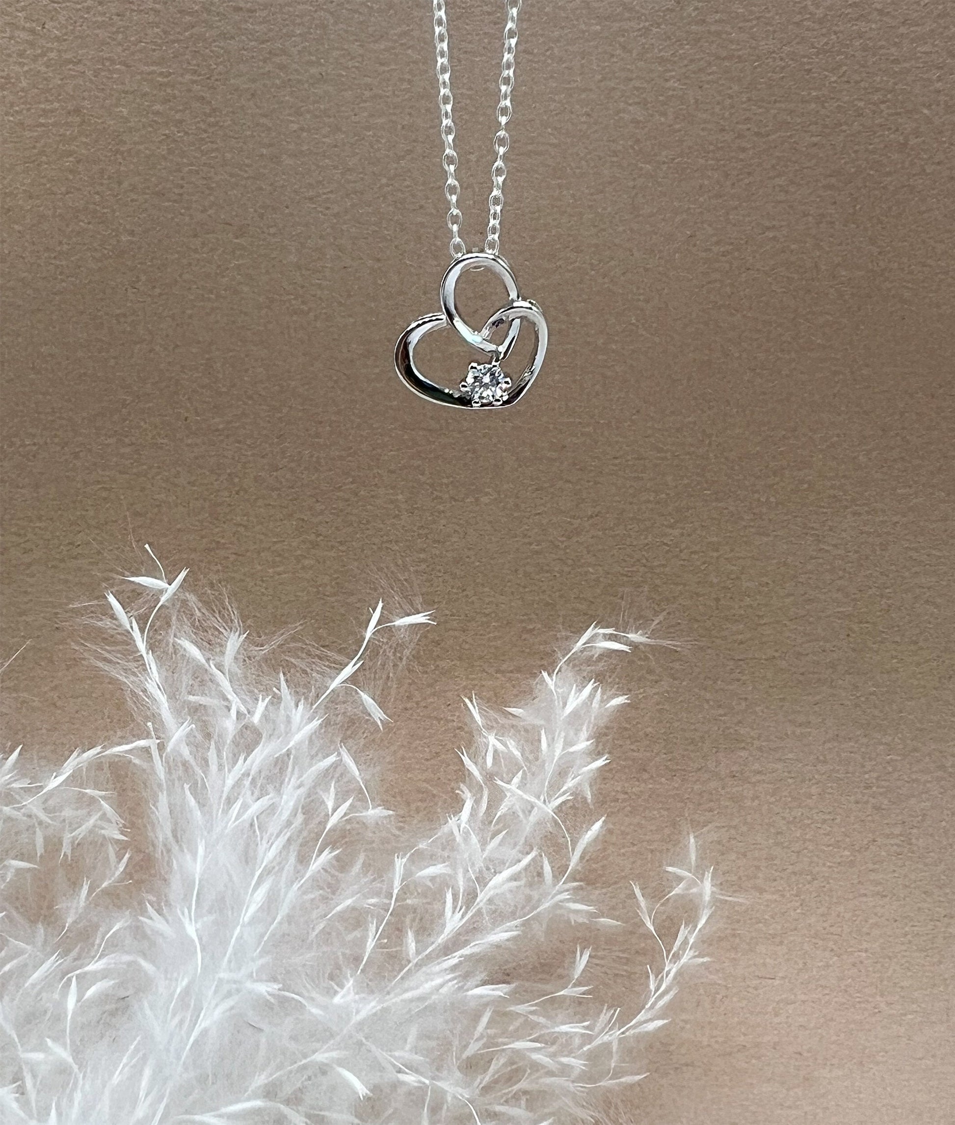 VVS1 Moissanite Heart Necklace: Rhodium Plated Sterling Silver